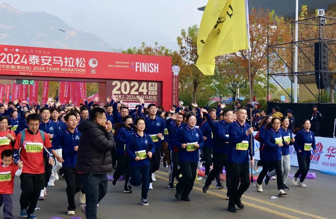 11月3日上午,2024泰安馬拉松暨好運(yùn)山東·馬拉松城市聯(lián)賽(泰安站)在泰山國(guó)際會(huì)展中心鳴槍起跑,22000余名跑者相約泰安,一起跑過(guò)壯麗山河。泰山文旅集團(tuán)作為唯一頂級(jí)贊助商,集團(tuán)機(jī)關(guān)與各子公司組成100人的文旅方陣,助力賽事成功舉辦。隨著發(fā)令聲響起,整個(gè)城市仿佛被瞬間點(diǎn)燃。選手們蓄勢(shì)出發(fā),精神抖擻,斗志昂揚(yáng)。賽道兩旁,觀眾揮舞著彩旗,為跑者們加油助威。