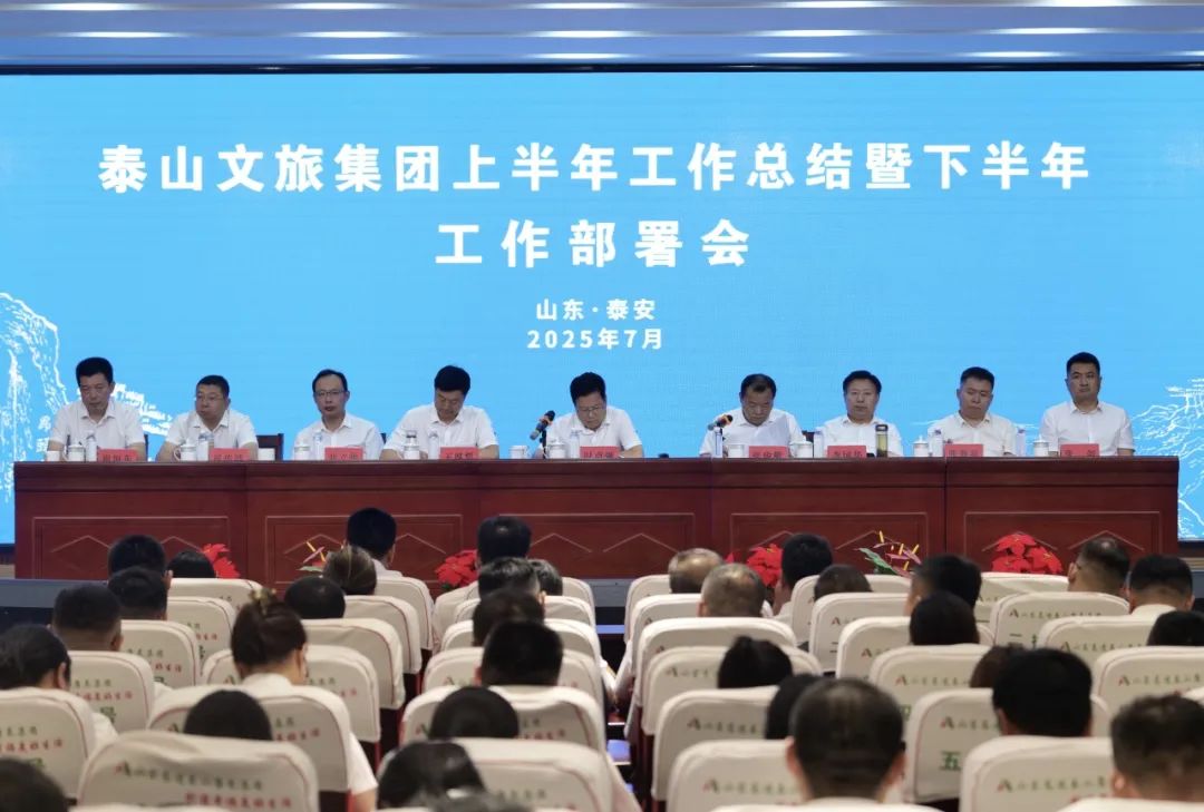 7 月 12 日,泰山文旅集團(tuán)召開上半年工作總結(jié)暨下半年工作部署會。會議全面總結(jié)集團(tuán) 2025 年上半年各項(xiàng)工作,深入分析當(dāng)前面臨的形勢和存在的問題,安排部署下半年重點(diǎn)任務(wù),動員集團(tuán)上下進(jìn)一步統(tǒng)一思想、堅(jiān)定信心、攻堅(jiān)克難,確保圓滿完成全年各項(xiàng)目標(biāo)任務(wù)。泰山景區(qū)黨工委委員,集團(tuán)黨委書記、董事長時(shí)貞強(qiáng)出席會議并講話,集團(tuán)黨委副書記、總經(jīng)理張俊敏主持會議。